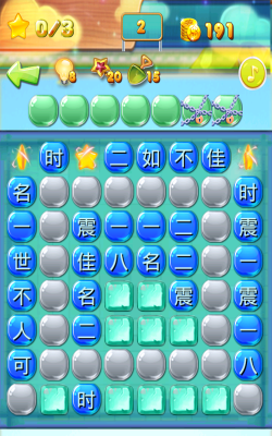 1、游戏开始给你一堆汉字,你需要在其中找到汉字组成成语;