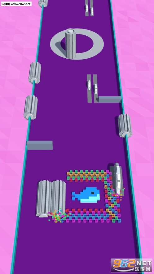 3、通过不断的控制彩色砖块来让它们进行到深渊的无底洞,十分的简单。