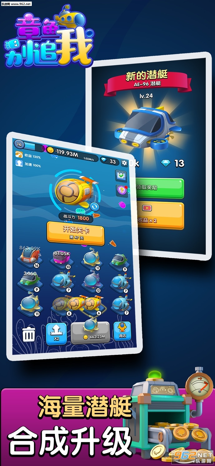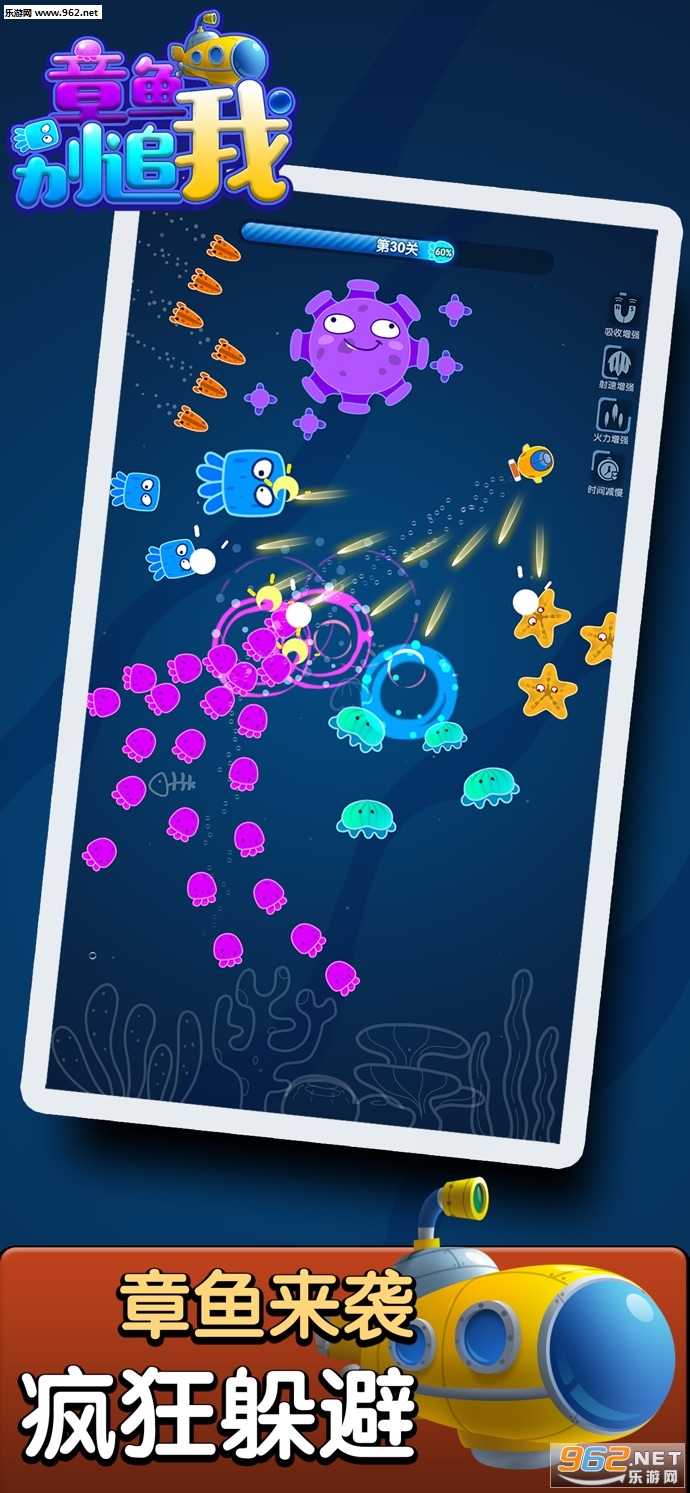 3、游戏的潜艇会随着你的游戏进度而不断的增大,那个时候就不是章鱼追你了。