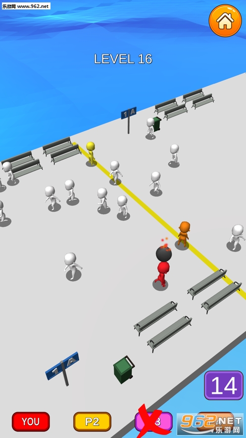 《人群逃生3D官方版》是一款很有想法和创意的休闲类游戏,玩家操作一个头顶炸弹的小人冲进人群之中,惊慌下的人群自然会四散逃开,玩家需要做的是尽可能让炸弹爆炸后波及的人数更多,游戏玩起来有点丧心病狂的感觉。