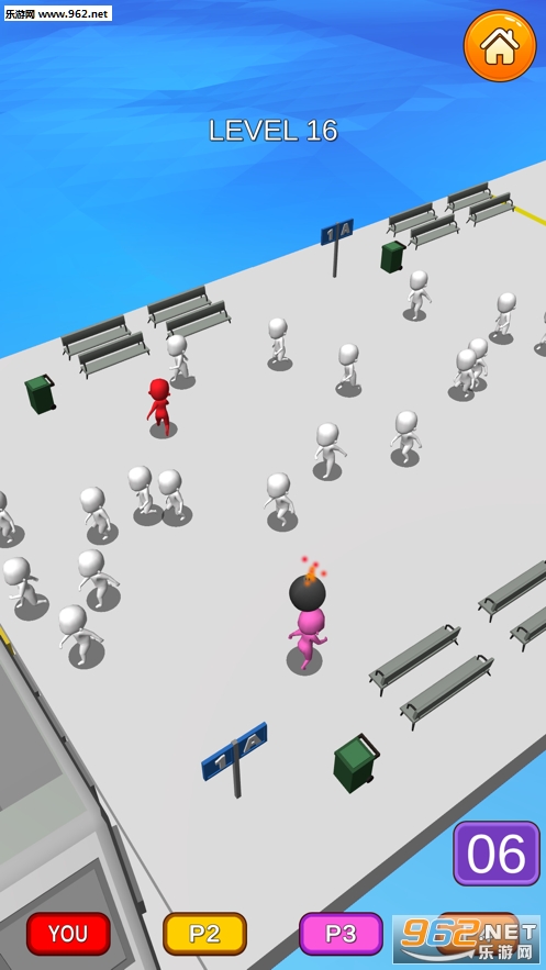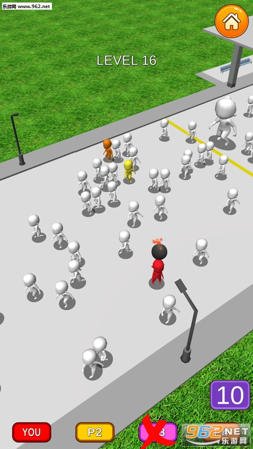 拥有着简单的3D画面,有趣的玩法和联机功能,你要在危机时刻冲过人群逃离危险。游戏中会随机刷新炸弹,看到炸弹当然要跑啊,可是那么多人可不好跑。和其他玩家一起竞技,活到最后的人是胜利者。