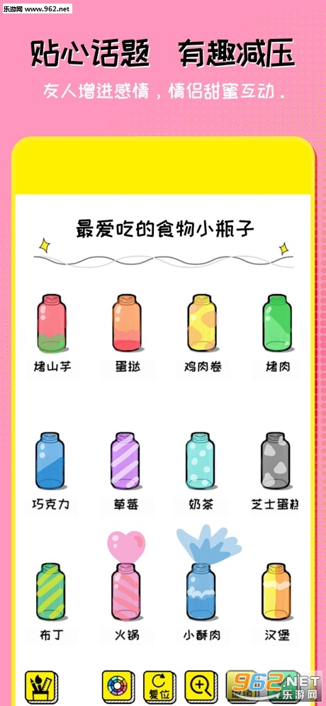 《我的心动恋爱小瓶子游戏》是一款非常好玩的减压小瓶子涂色游戏,本作就是集合了之前火爆的瓶子涂鸦大赛的梗,里面可以直接进行快乐源泉小瓶子等的涂色玩法,不用去找图片了,玩起来十分的有趣,感兴趣的亲们赶紧下载吧。