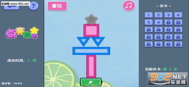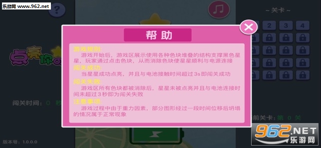 3、游戏中点击色块进行消除,当星星成功点亮并且与电池接触超过3秒就通关。