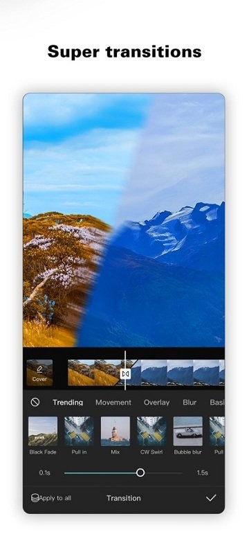 探索可在片段上和片段之间产生出色特效的转场选项。