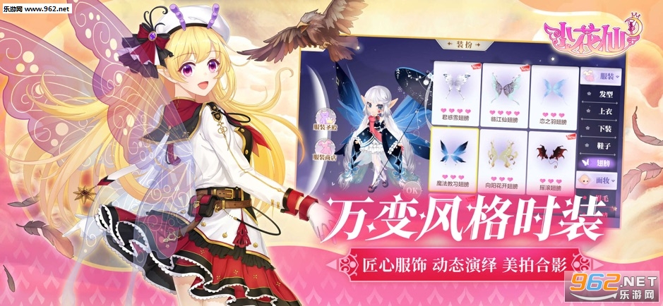 游戏在玩法上极大程度重现花种种植、家园经营、抚育花宝等经典内容,用全新的方式诠释拉贝尔大陆上花仙交织的奇幻冒险,并提供风格万变的时装系统供玩家自由搭配。