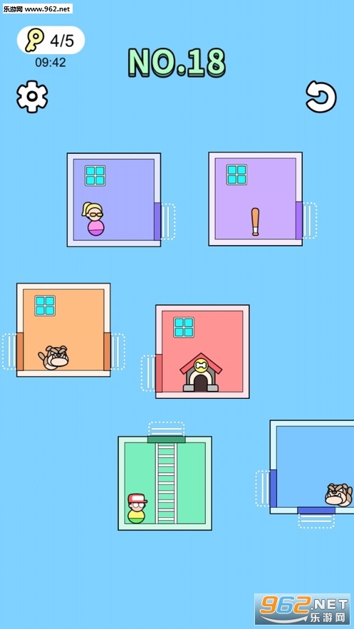 游戏中玩家需要帮助小姐姐见到自己的男友,玩家需要拖动房间,接近另一个房间的出口,从而打通房间,让小姐姐能够顺利的在个个房间中穿梭,已达到进入目标房间,见到自己的男友的目的,成功闯关。