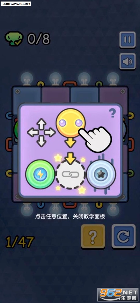 3、当实在不知道怎么连接电路方块时,可以点击屏幕上的问号,会给你一些提示。
