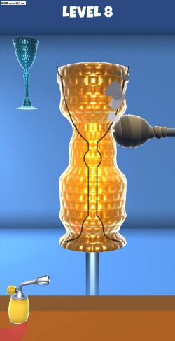 《玻璃吹制3D官方版》(Glass Blowing 3D)是一款画面精致的模拟制作玻璃艺术品的趣味休闲手游,游戏中玩家将成为一个玻璃吹制大师,可以将各种玻璃块吹制成酒杯、碗等各种玻璃制品,一点点的吹制变形,制作出与目标模型一致的样品,可以在玻璃制品上涂抹各种颜色进行装饰。