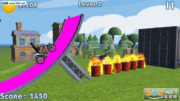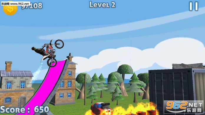 横向卷轴式的特技摩托游戏,游戏的难度其实不高,但新人还是需要花点时间来找到手感,熟悉之后玩起来就非常爽快了,相信你在这里能越玩越上瘾。