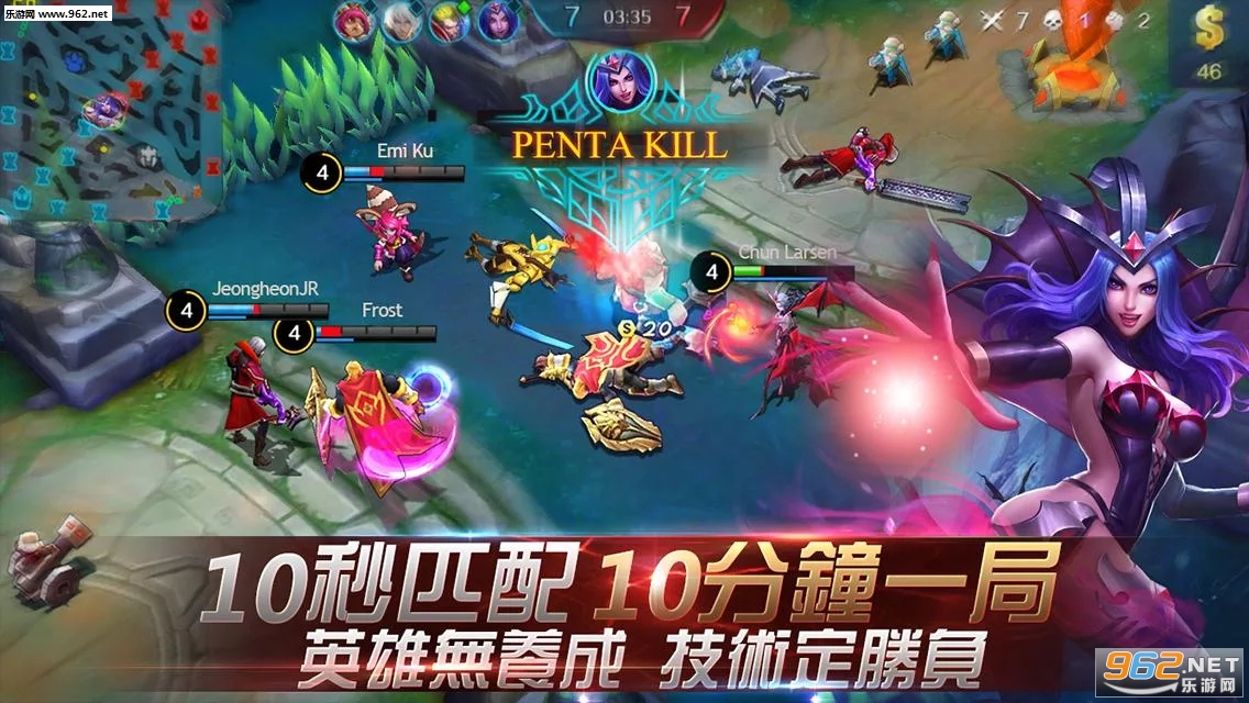 10秒完成匹配,10分钟内完成一局战斗,放弃前期冗长成长发育过程,团战节奏大幅提前,少的是无聊的等待和繁琐的操作,多的是击杀的快感和获胜的喜悦。在任何地点、任何间隙,拿起手机随时开团,投身紧张刺激的MOBA竞技世界。