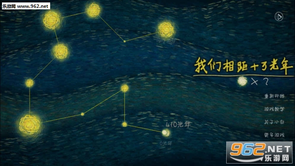《我们相聚十万光年》是一款风格文艺清新的独立游戏。在游戏中玩家将成为一束光,围绕一颗星星的时候吸收能量,离开时消耗能量。而玩家便是要尽可能地去游历整片宇宙!游戏画风精美,玩的时候会给人带来身心愉悦的感受。感兴趣的朋友赶紧来下载体验一下吧!