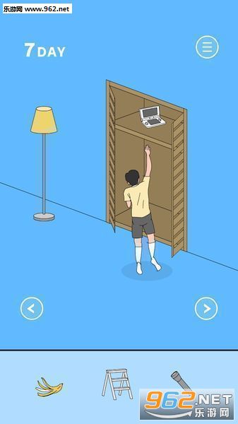 橱子里拿起梯子,架在右边衣架下面爬上去拿3DS。