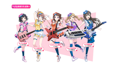 由五名青梅竹马所共同组成的王道女子摇滚乐团「Afterglow」、因为演艺事务所的企划而诞生的偶像乐团「Pastel*Palettes」、拥有高超技术的正统女子乐团「Roselia」,以及最后主打快乐、幸运、微笑的「Hallo Happy World!」等女子团体登场,各式各样充满不同特色的美少女乐团组合,将与玩家们展开一场不一样的邂逅体验!