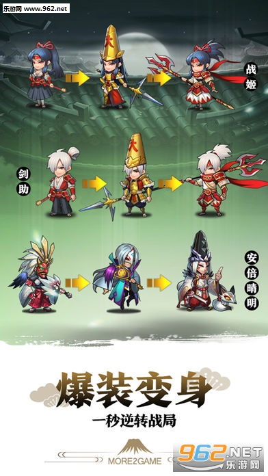 每位名将都拥有独特的酷炫大招,上百个武将绝技,数十种兵种特性,组合千变万化,配合排兵布阵,让策略决定战局。更有爆装变身系统,带来一秒逆袭、扭转战局的快感。