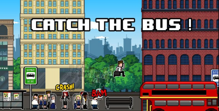 游戏中你控制一个错过公交车的倒霉蛋,为了赶上公交车需要一路狂奔,沿途会有路障、下水井、垃圾桶和锻炼的老大爷等障碍,你需要一一跨过,不过吃了能量瓶以后就会进入暴走模式,碾压一切。
