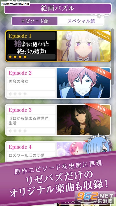 本作是动画《Re:从零开始的异世界生活》的首款官方手机游戏,收录了超过100枚TV动画本篇名场景,并有全新录制的语音,玩家可以与女主角「爱蜜莉雅」共同解谜。