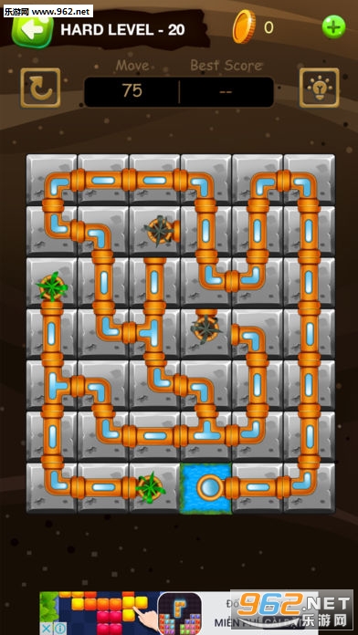 玩家需要在动作次数(触摸1管件=1动作)用完之前使水灌溉花朵。所以开始对水管进行排列之前想一个好的排管策略是至关重要的。来成为一个熟练的水管工吧!