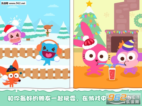 以冬季雪景为主题的儿童休闲游戏,玩法丰富趣味。