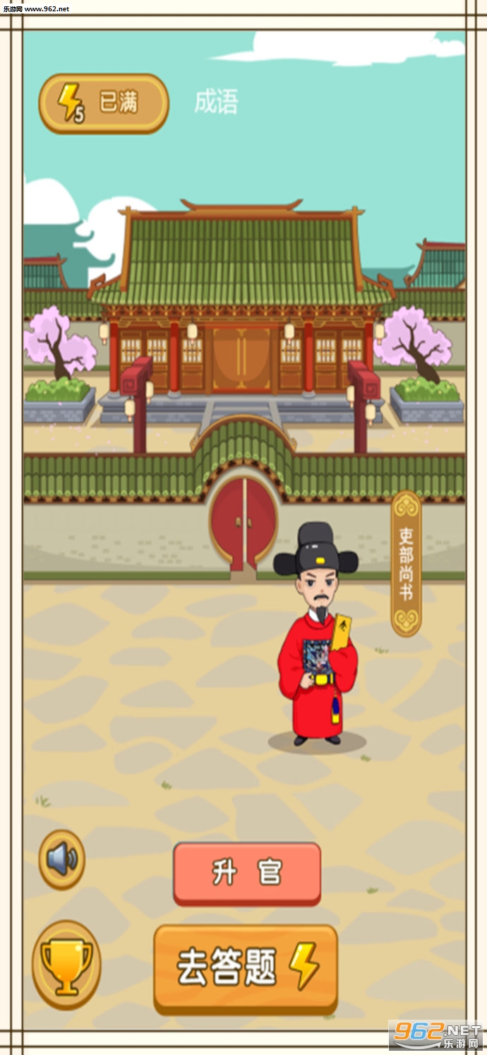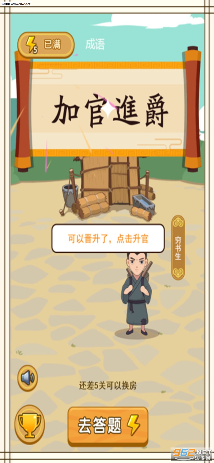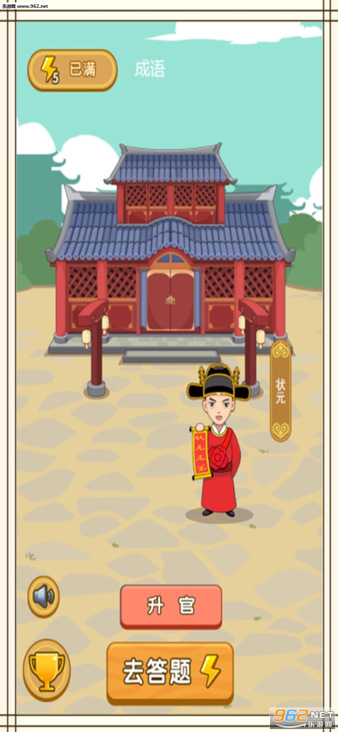 4、完成关卡中的成语挑战可以让你步步高升,当高官、住大宅,娶美女。