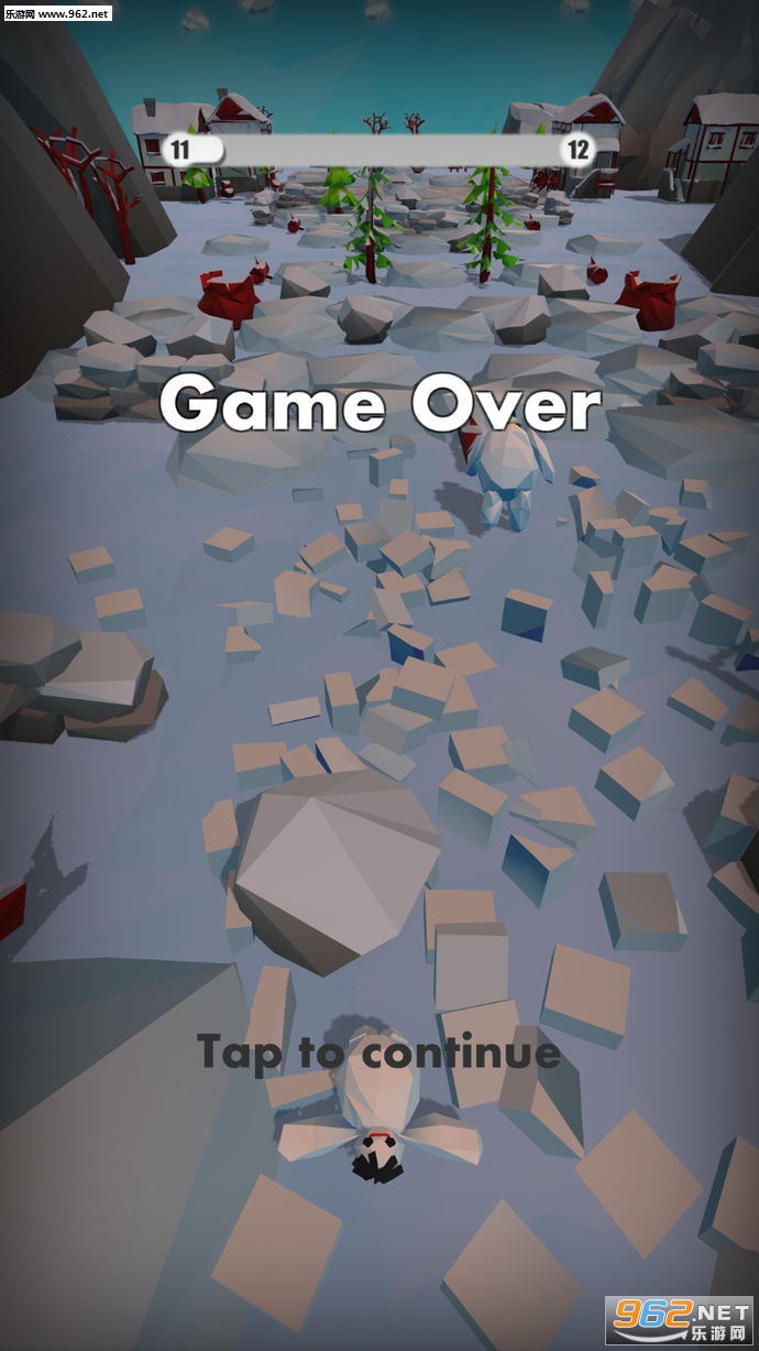 2、最好是将出现在视野中的所有的大的石头都击碎,不然撞到小雪人就完了。