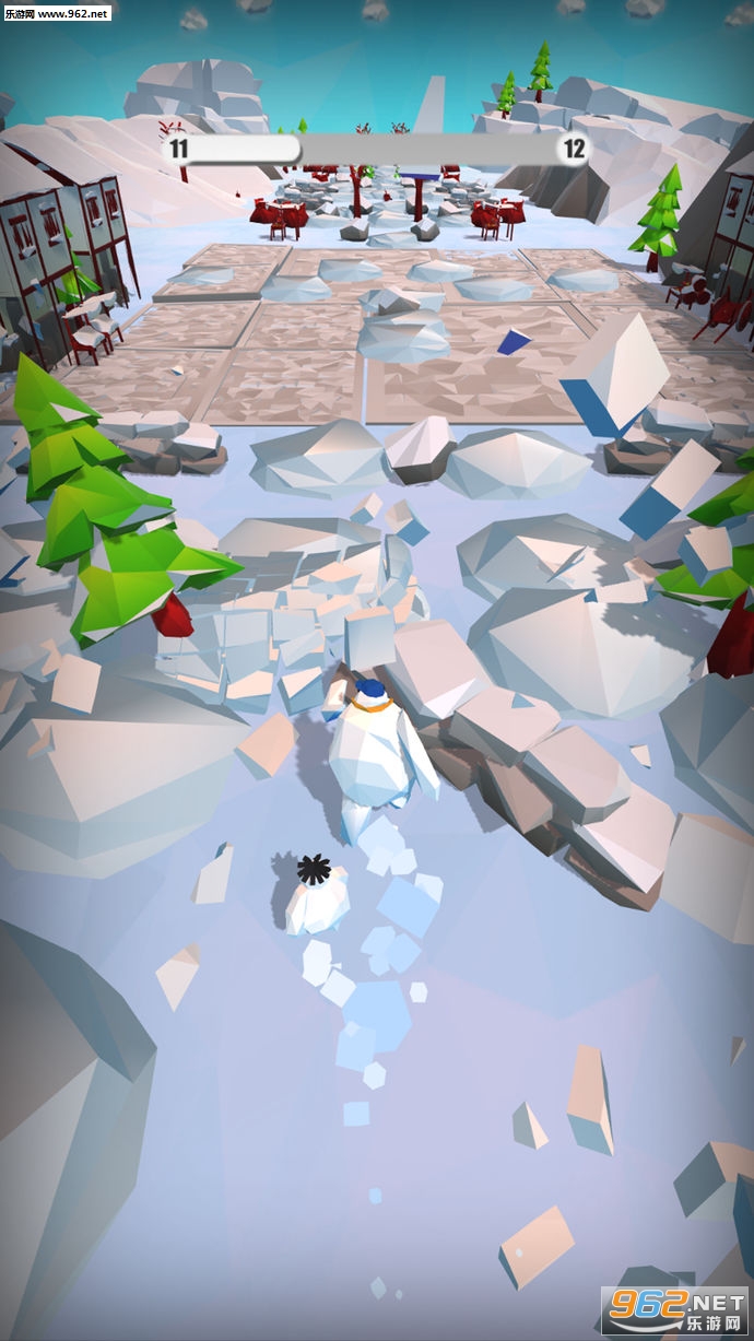 1、大雪人左右移动,击碎一些出现在面前的大石块,让这些石头不会阻挡小雪人前进的路线就可以了,小雪人在后面就可以慢慢向前奔跑。