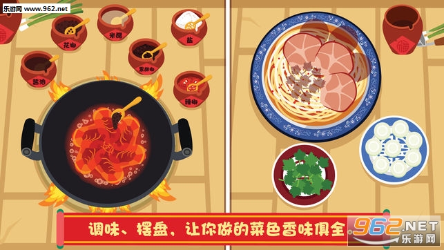 想要制作完美的美食还要合适的口味!辣椒、酱油、盐、醋、花椒油和黑胡椒等六种调料可以随意搭配!刺激你的味觉神经!不要忘记观察顾客们对你制作的料理产生的各种有趣的反应哦!现在就和泡泡兔一起开启新的美食之旅吧!
