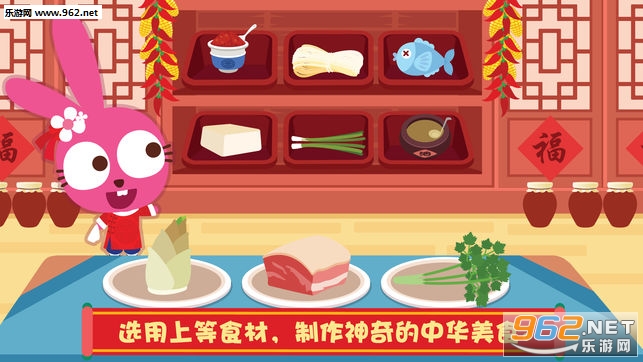 每种食物都有自己的优点,享受不同食材的搭配!泡泡兔中餐厅提供超过五十种新鲜丰富的食材!包括鸡肉、胡萝卜、黄瓜、豆腐、猪肉、豆瓣酱、白菜、鸡蛋、火腿、香菇、虾、黑木耳、笋、西红柿、牛肉、香菜、鲈鱼等等!优良的食材,打造一级的口感!