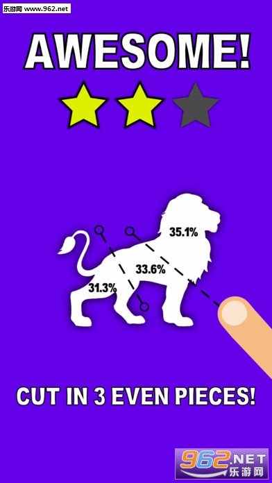 玩家需要将每个关卡的剪影,按照要求分成几半,而且大小越接近,给你的评价越高哦!