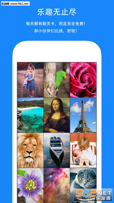 《全民拼图》推出全新的社交玩法。您可以用照片制作成拼图关卡,通过朋友圈//QQ/QQ空间/等社交平台分享关卡给朋友玩。朋友在拼出图片前看不清图片(模糊或打散)。总之,要看图先拼图!