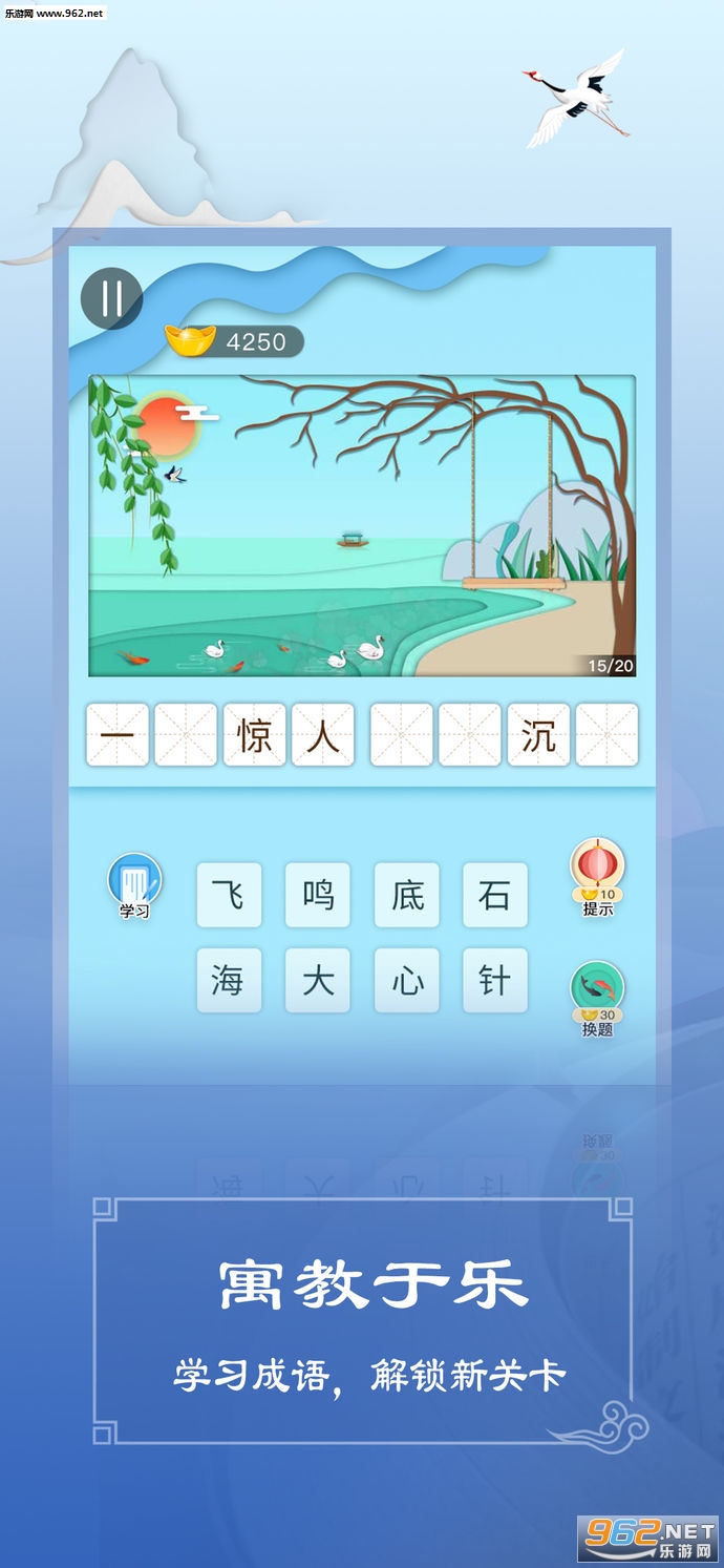 1、一款采用清新唯美的东方古韵国风全新打造的成语消除休闲趣味游戏。