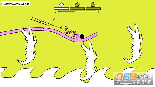 玩家尽可能的保证黑球一直在运动,快速的涂鸦跑道帮助黑球躲避障碍物保证生存;