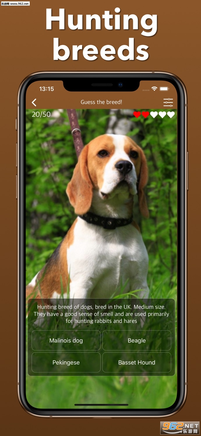 《所有品种的狗游戏官方版》是一款画面清新的猜狗狗品种的趣味休闲手游,游戏收录了数百种不同的狗狗,朋友们需要根据给出的图片来猜测狗的品种,当然会给出四个选项,这样难度就没有那么的大了,让你认识众多的狗狗。