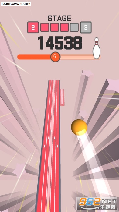 考验玩家的反应能力,你要控制好保龄球的方向,不要让它掉落到轨道下面
