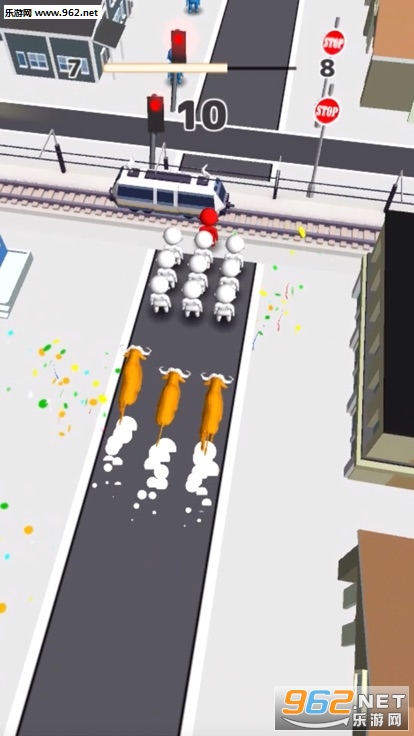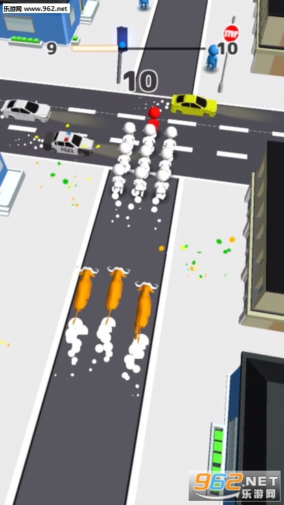 玩家需要控制角色,避开汽,而且吸引的人群越多,分数也会越高哦!