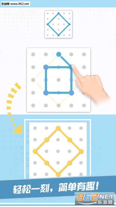 游戏玩法简单,容易上手,画面简约清新,拥有上万个关卡可以让你挑战,并且每个关卡都有多种不同的解法,可以让玩家打发时间 ,也能帮助你锻炼你的思维!