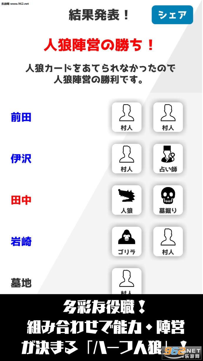 因为APP有所属阵营、特殊能力、胜利条件等导航功能,所以即使是初学者也能安心玩人狼游戏的游戏性!