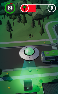 《UFO Idle游戏》是一款很简单的休闲游戏,游戏的画面是元气满满的卡通风格,精致漂亮,游戏中玩家要控制着你的飞碟去到很多地方,城市,村庄,郊区等等收集材料,带回去研究,完成你的任务,然后不断的升级你的飞碟。