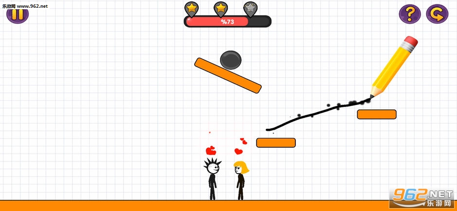 趣味的画线游戏,有人在你的面前秀恩爱怎么办,是不是想要拆散他们,本款游戏中玩家的任务就是让小球撞击他们,拆散他们,注意画出合理的线条轨迹,喜欢的朋友可以下载试试。