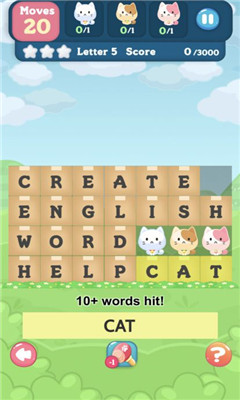 2.你可以用单张字母创造英文单词来拯救猫,轻敲字母以生成正确的单词,这些单词将被删除;