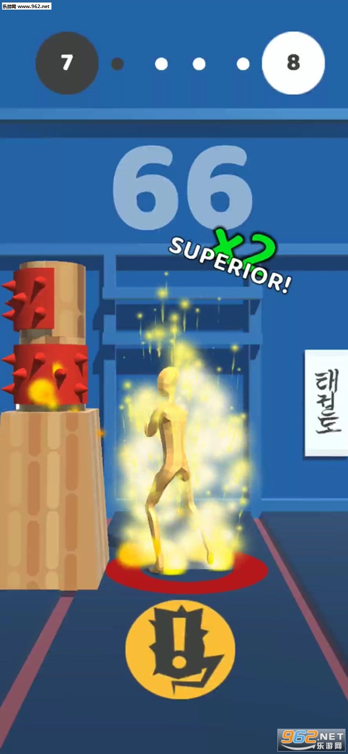 2、只需轻点屏幕,即可让角色施展跆拳道中的踢腿动作,粉碎所有障碍;