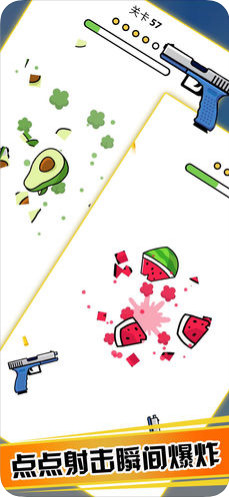 这是一款非常休闲放松的点击小游戏,时下火热的解压游戏,点击手枪,射击飞出的物品,在物品炸裂的瞬间,带给你视觉的刺激,身心愉悦的享受,还在等什么,来放松一夏吧!