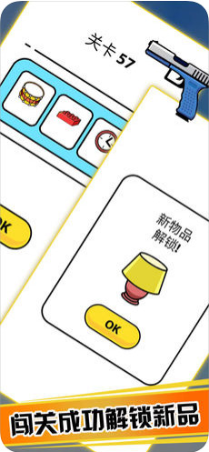 千奇百怪各种各样的物品,唯有你想不到的,在这里,你都可以打碎它们;手枪射击感强烈,配上击中物品的音效,带给你最真实的射击体验;带你的朋友,来和他们比比谁才是最强的闯关者!
