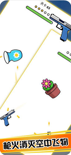 《射击大作战官方版》是一款小清新风格的休闲解压射击游戏,游戏的画面简约清爽,点击手枪,在物品飞起来的时候射击它们,感受物品被爆掉的爽快感,让你释放你的压力,你还可以解锁多种手枪来射击哟。