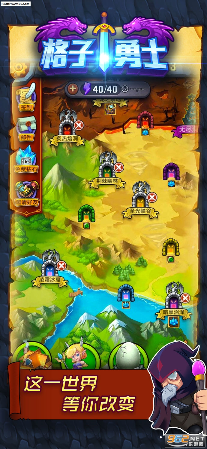 1、充满刺激的冒险之旅,运用手中的英雄角色去帮助玩家持剑屠龙,完成探险。