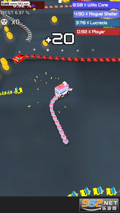 总体来说是一款非常不错的io竞技类的游戏,玩家将操作着各种不同颜色的车辆在游戏中通过获取能量让自己变得越来越长,游戏结束后最长的即可获胜,喜欢的亲们赶紧下载吧。