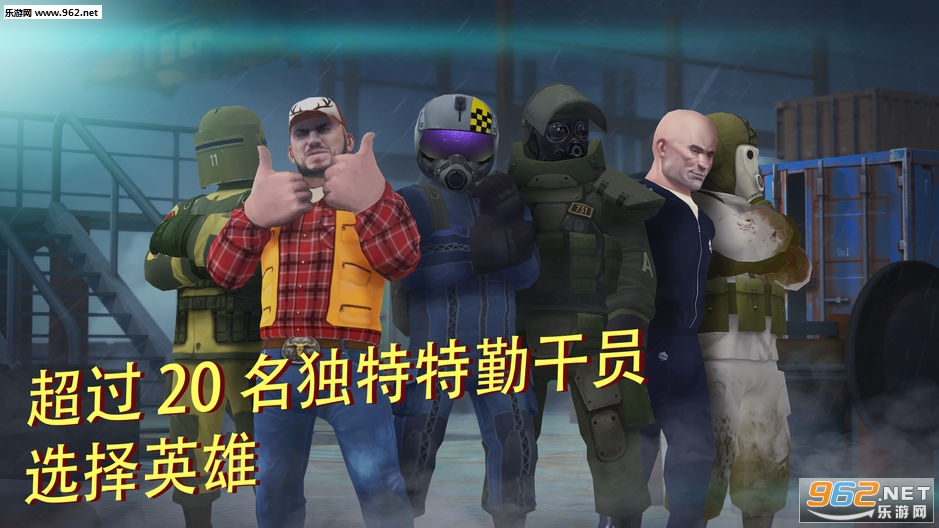 化身不同类型的特勤干员,购买并升级超过50款武器和支持设备。探索5张戏剧化地图上的数百种独特战术。记住:出其不意、速度和行动勇气是制胜关键。