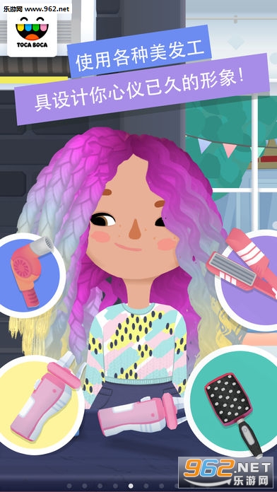 拿起你的美发工具,从几十种自定义装扮中选择喜欢的角色,随心所欲地打造各式各样新潮的发型吧!