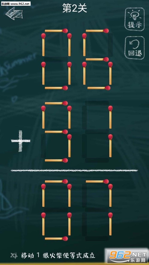 点中屏幕上的火柴,此时火柴会出现闪烁,表示已经选中。再点数字阴影区域,即可移动火柴。如果此时等式成立,并且只移动了一根火柴,即可过关。