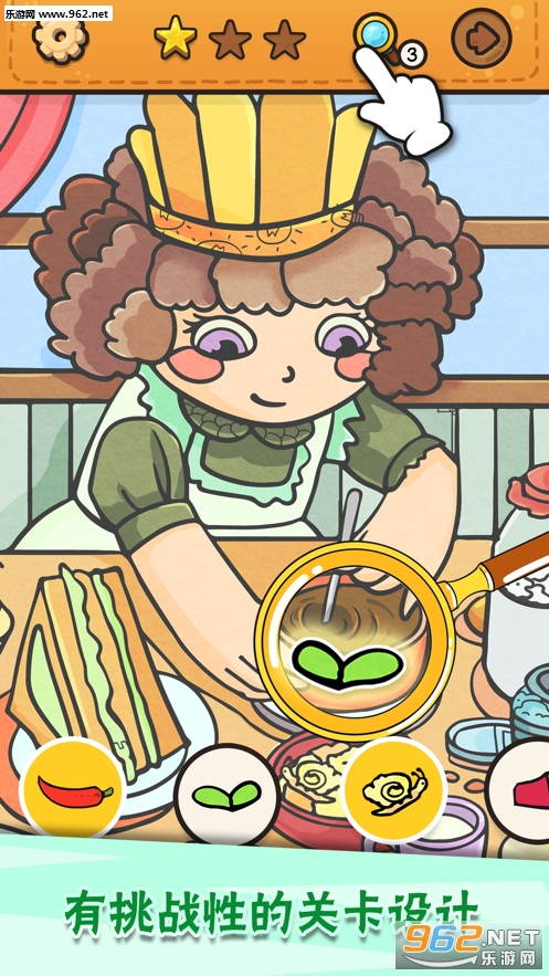 2、每一个关卡可以使用三次提示功能,帮助你寻找需要的物品,尽快完成闯关挑战。
