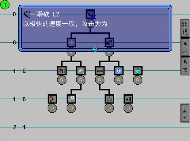 游戏技能分为物理、魔法、其他3种。角色每升一级会获得1个技能点,高级技能有等级限制。